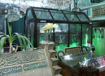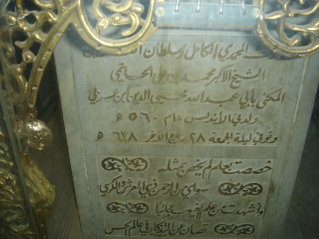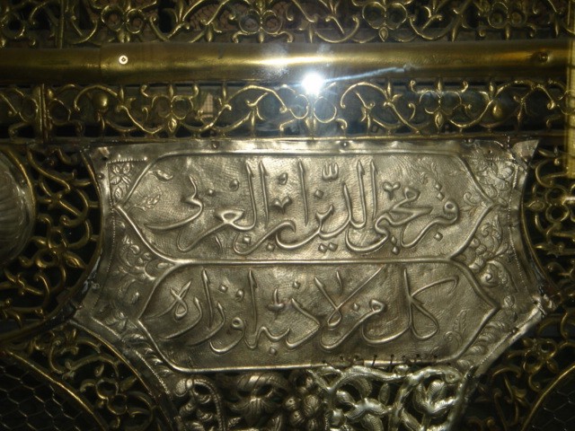 بیتی است که بر روی قطعه سنگی در راهروی ورودی سرداب مطهر قبر ایشان از اشعار در کتاب مستطاب فتوحات مکیه ایشان نوشته شده است .